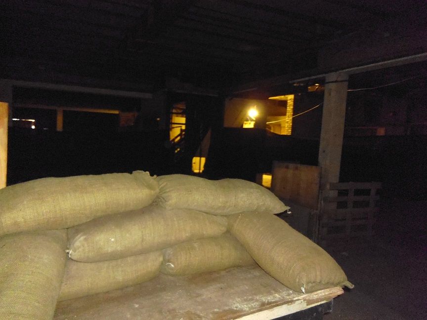 Upper floor looking out on to bunkers lights on