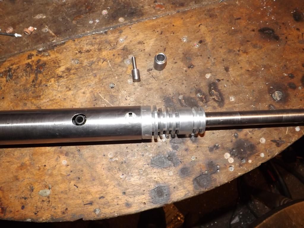 Next on the build will be the receiver but I might just reduce the amount that the Alloy part before the finned section extends at the end of the main steel tube section ,on the real gun it's much shorter ,its part of the sten hop housing and the barrel screws into it but I can reduce it a bit without the barrel becoming insecure .after that though it's the receiver .